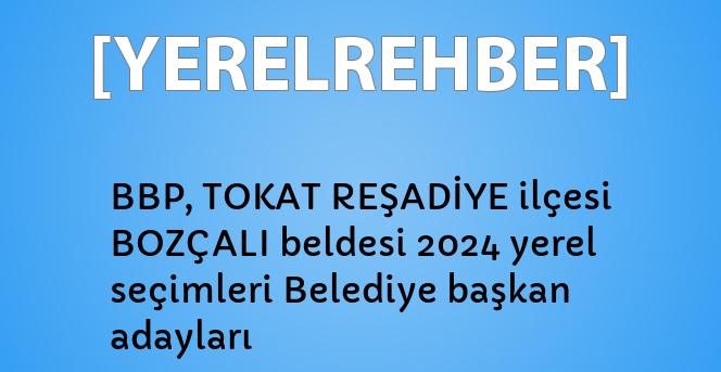 BBP, TOKAT REŞADİYE ilçesi BOZÇALI beldesi belediye başkan adayları'nı yazının devamında bulabilirsiniz.