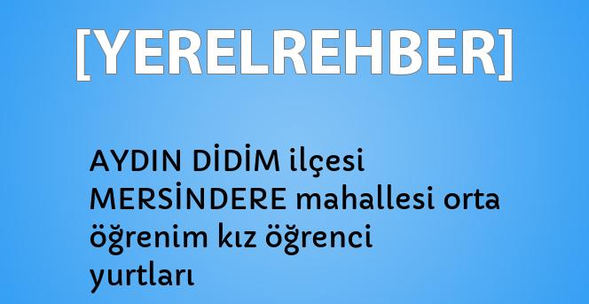 Aşağıda sistemimizde yer alan MERSİNDERE mahallesindeki yurtları görebilirsiniz. Ayrıca AYDIN ilimizdeki yurtların tamamını görmek için buraya tıklayın.