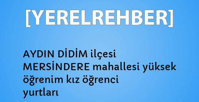 Aşağıda sistemimizde yer alan MERSİNDERE mahallesindeki yurtları görebilirsiniz. Ayrıca AYDIN ilimizdeki yurtların tamamını görmek için buraya tıklayın.
