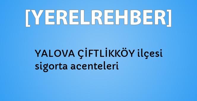 Sigorta önceden ödenen prim karşılığında, bir kimsenin ya da bir şeyin herhangi bir yönden ilerde karşılaşabileceği zararı gidermek için, bu işle uğraşan bir kuruluşla yapılan bağlantı sözleşmesine denir. ÇİFTLİKKÖY ilçemizde sigorta acentelerini biraraya getirmeye çalıştık. Bu sayfada ÇİFTLİKKÖY ilçemizdeki sigorta acentelerini bulabilirsiniz. Sağ menüden (mobil cihazlar için aşağıda) yerleşim yerlerindeki sigorta acentelerini görebilirsiniz. YALOVA ilimizdeki bütün sigorta acentelerini görmek için buraya tıklayın.